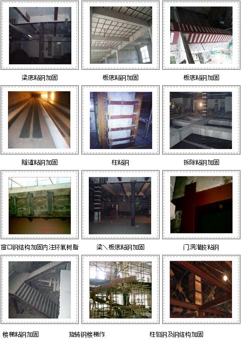 粘鋼加固技術適用于承受靜力作用的一般受彎及受拉構件。加固后的構件重量增加或減少;同時不影響構筑物的使用凈空,不改變構件外形;且連接處受力均勻,不會產生應力集中。粘貼鋼板加固施工快速、現場無濕作業或僅有抹灰等少量濕作業,對生產和生活影響小,且加固后對原結構外觀和原有凈空無顯著影響,但加固效果在很大程度上取決于膠粘工藝與操作水平;適用于承受靜力作用且處于正常濕度環境中的受彎或受拉構件的加固。