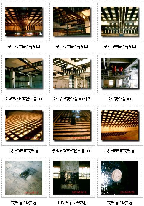 纖維類材料(碳纖維布、碳纖維板、芳倫纖維及玻璃纖維)加固修復混凝土結構技術是采用配套粘結樹脂將碳纖維布粘貼于混凝土表面,起到結構補強和抗震加固的作用。廣泛適用于建筑梁、板、柱、墻等的加固,以及橋梁、隧道、煙囪、筒倉等其它土木工程的加固補強。